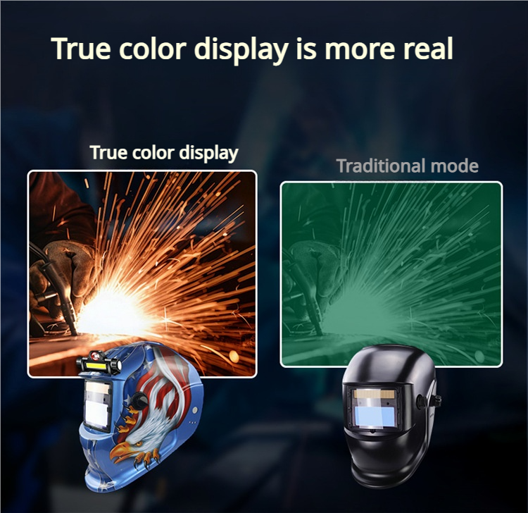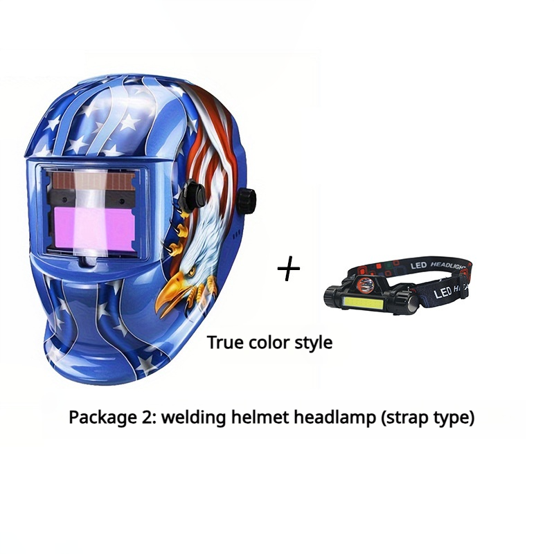 Auto-Darkening LED Headlight Welding Helmet with Stepless Adjustment PP Material Solar Powered for Welding & Grinding Work